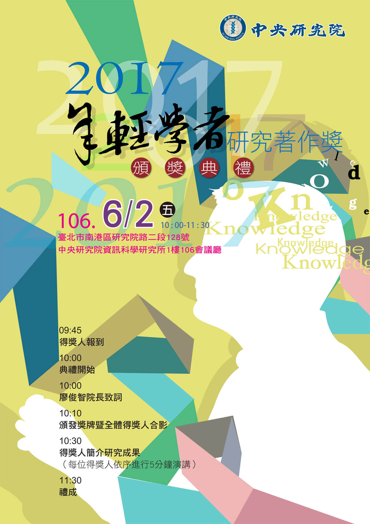 圖1. 2017年中央研究院年輕學者研究著作獎頒獎典禮宣傳海報